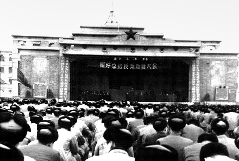 大操场中央北侧有一个大舞台,是全院集会的场所,也是娱乐的中心