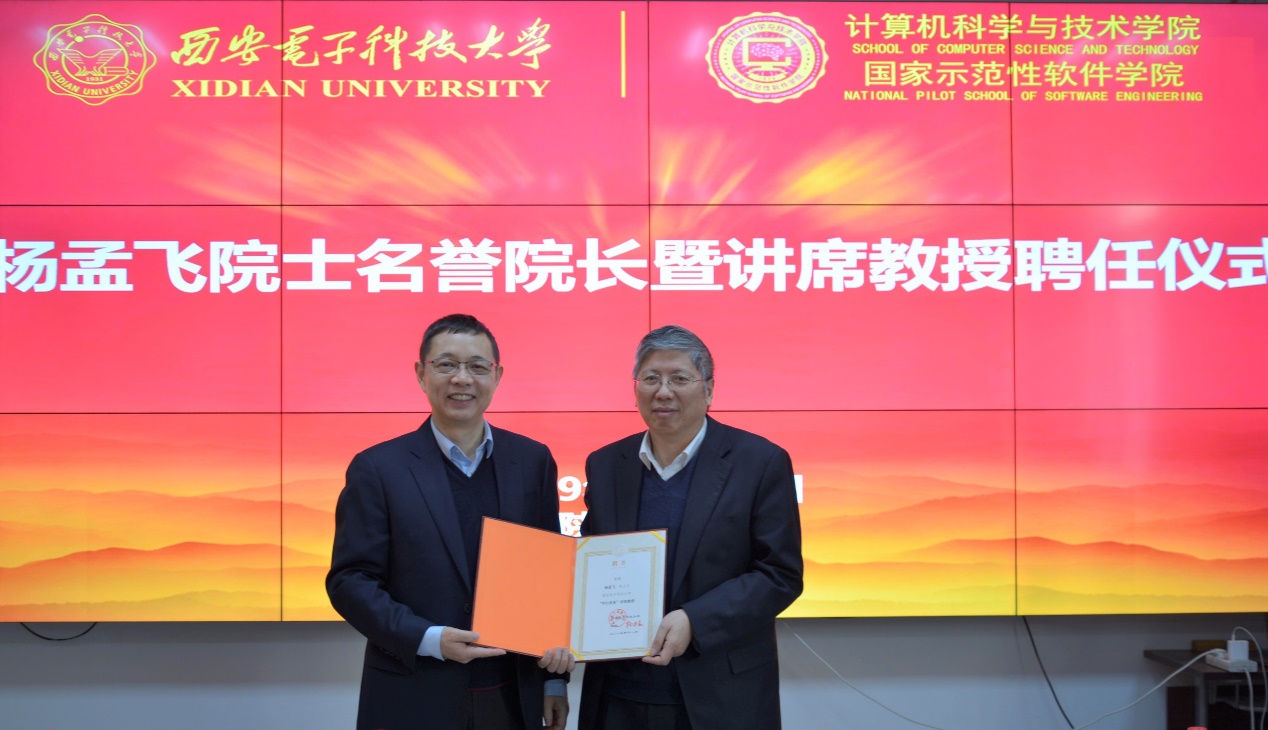 杨孟飞院士受聘为西电计算机科学与技术学院名誉院长及讲席教授