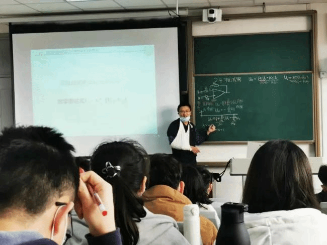 近日,西电王新怀教授上模拟电路课的图片在网络热传,学生们纷纷点赞。据了解,西电的王新怀教授前段时间不慎摔伤了,为了不耽误学生们学习,他仍坚持上课。