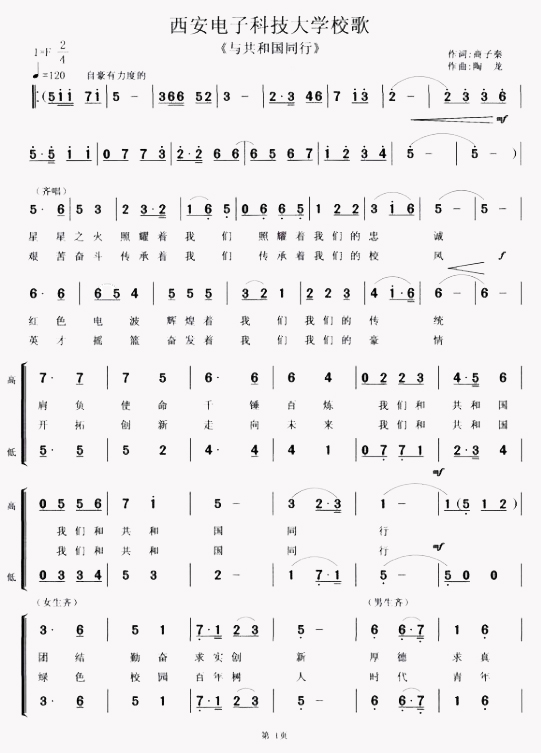西电校歌: