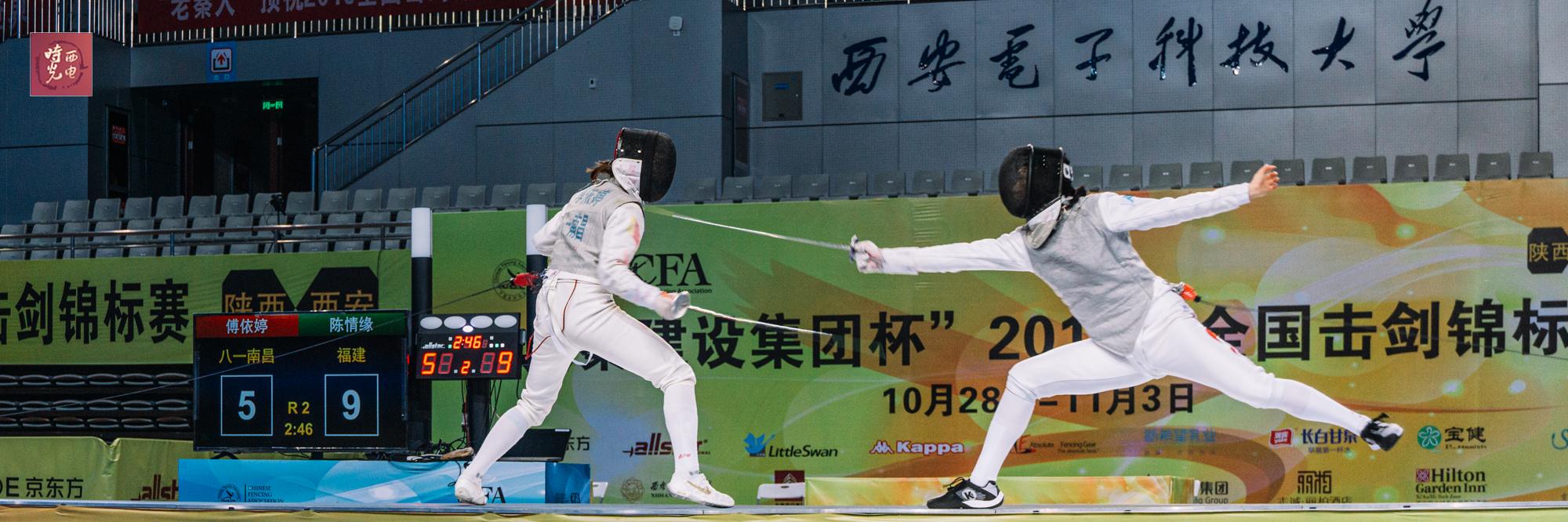 全国击剑锦标赛是中国击剑协会最顶级的单项国内体育赛事,也是陕西迄今为止承办的参赛人数最多、赛事级别最高的击剑赛事。远望谷体育馆的赛场上,选手们手持闪亮长剑,在剑道上你来我往,一次又一次精准的刺击,一次又一次精彩的防守,现场气氛紧张热烈,观众席中喝彩连连。