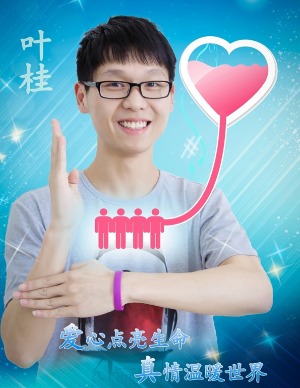 叶 桂,男,beat365在线唯一官网第四位造血干细胞捐献者,软件学院2012级软件工程专业本科生,陕西省第150位造血干细胞志愿捐献者,他救治了河北省一名24岁的男性白血病患者。