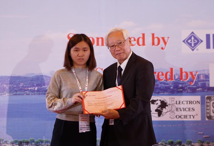 2016年3月博士入学至今,王洪娟继续针对TEFT及高性能MOSFET器件进行深入的研究,已经发表SCI论文2篇,国际会议口头报告3次并获得International Conference on Solid -State and Integrated Circuit Technology (ICSICT) 2016国际会议优秀学生论文奖 (Excellent Student Paper Award),获得2016年博士研究生国家奖学金及一等学业奖学金。其基于锗锡与硅锗锡材料设计了II型异质结P和N型TFET器件,完成了一系列仿真并进行了深入的分析,相关成果发表在IEEE Transactions on Electron Devices, vol 63, no 1, 2016及Japanese Journal of Applied Physics, vol 55, no 4, 2016;研究了沿Fin方向施加单轴张应变时鳍形TFET器件性能的变化,相关结果已经投稿到IEEE Transactions on Electron Devices及Japanese Journal of Applied Physics上,且部分已经在2016 Solid State Devices and Material (SSDM)国际会议上以口头报告的形式发表;还对基于锗及锗锡材料的TFET及MOSFET器件进行了实验测试分析,相关成果发表在2016 International Conference on the Physics of Semiconductors(ICPS)及2016 ICSICT,且在ICSICT会议上受到业内广泛好评并获得Excellent Student Paper Award。