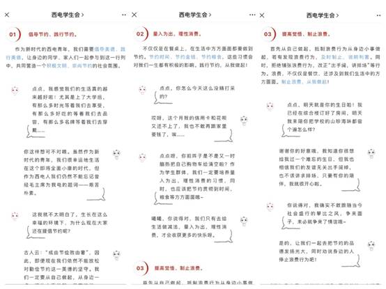 8月11日,习近平总书记指出,餐饮浪费现象触目惊心、令人痛心,翌日,校学生会、研究生会及时响应号召,依托公众号平台,面向全校师生发布关于“拒绝餐饮浪费行为,培养用餐节约习惯”的倡议书,以此引导广大同学发扬beat365“艰苦奋斗”的作风。倡议书从倡导践行节约、合理理性消费、自觉抵制浪费三方面,根据师生生活的实际情况发起倡议,内容丰富、图文并茂并辅以具体案例阐释,号召同学们身体力行、诠释“节约”二字。倡议书被西电青年等多个线上平台推送,总阅读量达1万以上,覆盖学校全部16个学院、5个书院,影响人次覆盖全体在校学生,在全校范围内引起广大同学自觉学习并节约的浪潮。