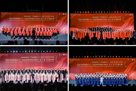 人文学院中华人文艺术传唱团,外国语学院、经济与管理学院、生命科学技术学院联队“生声不息,经外传奇”合唱团,计算机科学与技术学院“计”扬青春合唱团,物理学院、数学与统计学院联队“数大物博”合唱团