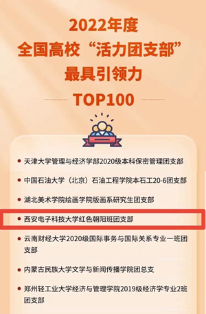 (通讯员杜永志 李荣帅)近日,为深入贯彻“全团抓思想政治引领”、“全团大抓基层”、“全团抓学校”工作部署,落实《关于改革创新高校共青团工作 切实增强思想政治引领实效的若干措施》,激发高校团支部活力,团中央基层建设部指导中国青年报社开展2022年度高校“活力团支部”风采展示活动。经过评选,西电红色朝阳班团支部脱颖而出,作为学校唯一团支部入选2022年度全国高校活力团支部。