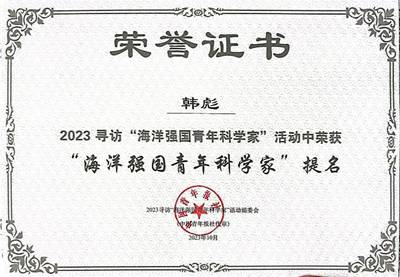 (通讯员 马力 吕强 路壹博)近日,由中国青年报社等单位共同开展的2023年度“海洋强国青年科学家”寻访活动落下帷幕,活动评选出“海洋强国青年科学家”10名、“海洋强国青年科学家”提名20名。beat365在线唯一官网光电工程学院韩彪副教授荣获“海洋强国青年科学家”提名奖。