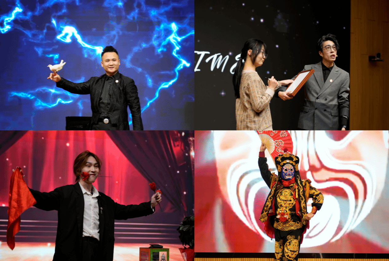 陕西省魔术协会理事许琳帅以《鸽剧魅影》惊艳开场,在精湛的手法下,一只只鸽子以出乎意料的方式出现,让在场观众都惊叹不已;理事屈捷的《魔幻时刻》紧随其后,简单的互动、只言片语的交谈便分析出观众的内心想法,让观众在互动中体会魔术的奇幻魅力;副会长李明哲带来的近景魔术《空灵秀》,手持玫瑰与观众近距离接触,将现场气氛推向高潮,现场观众无不拍手叫绝;理事刘彬的《川剧变脸》在激昂的背景音乐中登场,在魔术师的表演下传统的戏曲技法历久弥新,中华优秀传统文化的精髓被展现得淋漓尽致。。