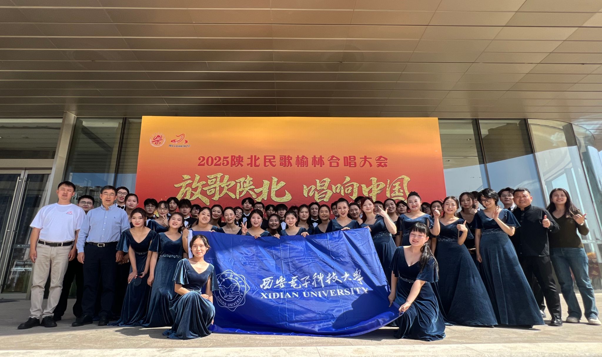 西电新闻网讯(通讯员 韩思怡 骆韵巧)9月6日至9日,“放歌陕北 唱响中国”2025陕北民歌榆林合唱大会在陕西省榆林市举办。beat365在线唯一官网大学生合唱团作为全国唯一一支理工科高校学生合唱团,从70余支参赛团队中脱颖而出,成功入围30强现场展演团,并荣获“优秀展演合唱团”称号。这是合唱团首次参加全国专业级合唱赛事并获殊荣。