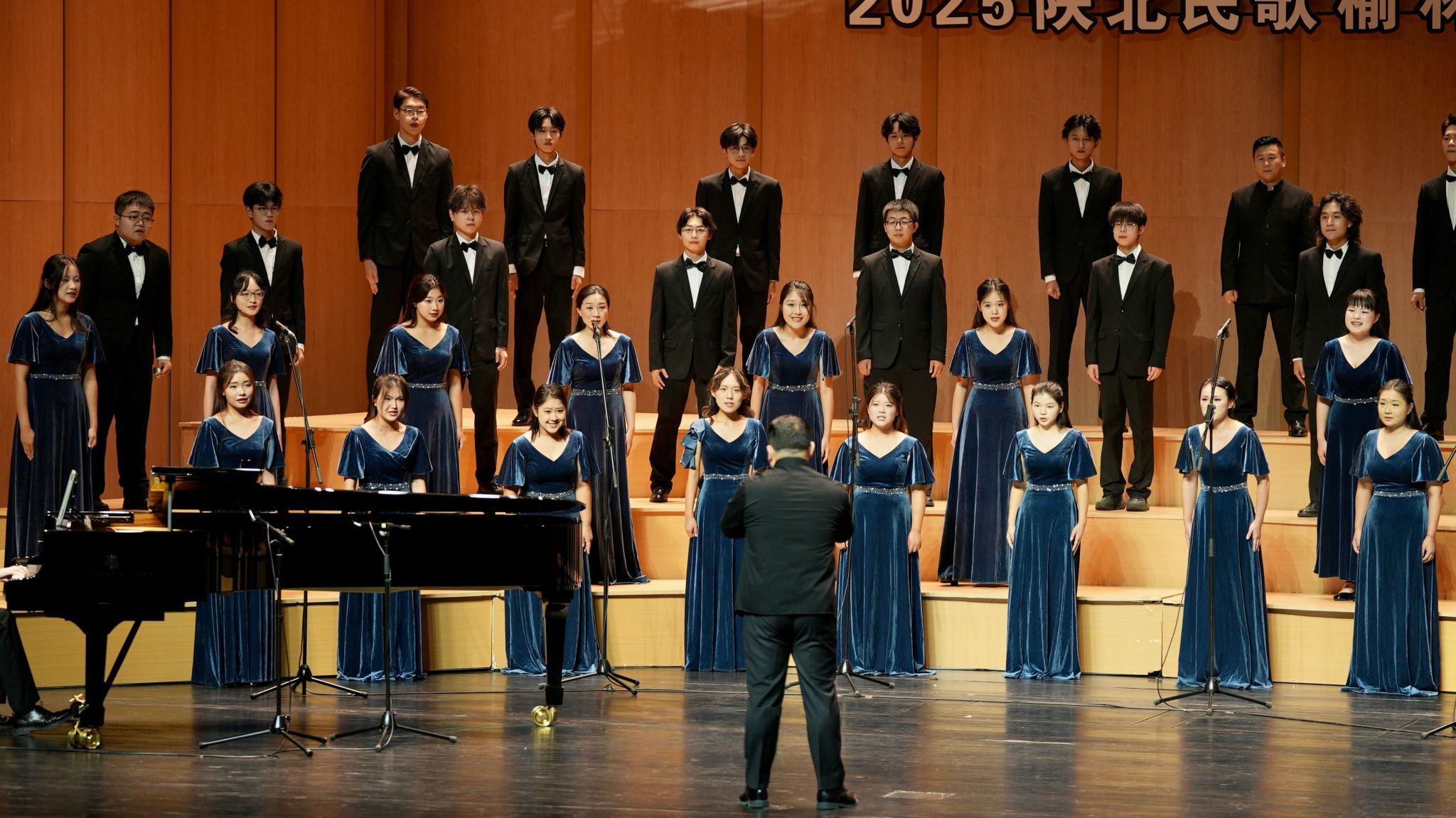 据悉,西电大学生合唱团隶属于学校高水平大学生艺术团,由校团委负责日常管理、通识教育中心负责艺术指导。合唱团是学校落实认识美、感受美、创造美的美育主旨实施美育浸润的重要组成力量。合唱团的同学们来自全校不同专业,不仅学业出众,更在艺术舞台上绽放光彩,真正体现了“艺术与科学双向奔赴”的育人理念。为全力准备此次高规格赛事,团员们在短暂的备赛期内凝心聚力、全力冲刺,挑战了两首风格迥异的高难度曲目:一首是极具现代气息高难度无伴奏作品《Nyon Nyon》,另一首是是深情热烈的西电原创合唱作品《信天游》。从复杂多变的节奏把握,到真挚淳朴的情感表达,合唱团在老师们的精心指导下反复打磨、精益求精,最终实现了对作品的精准诠释与动人呈现。