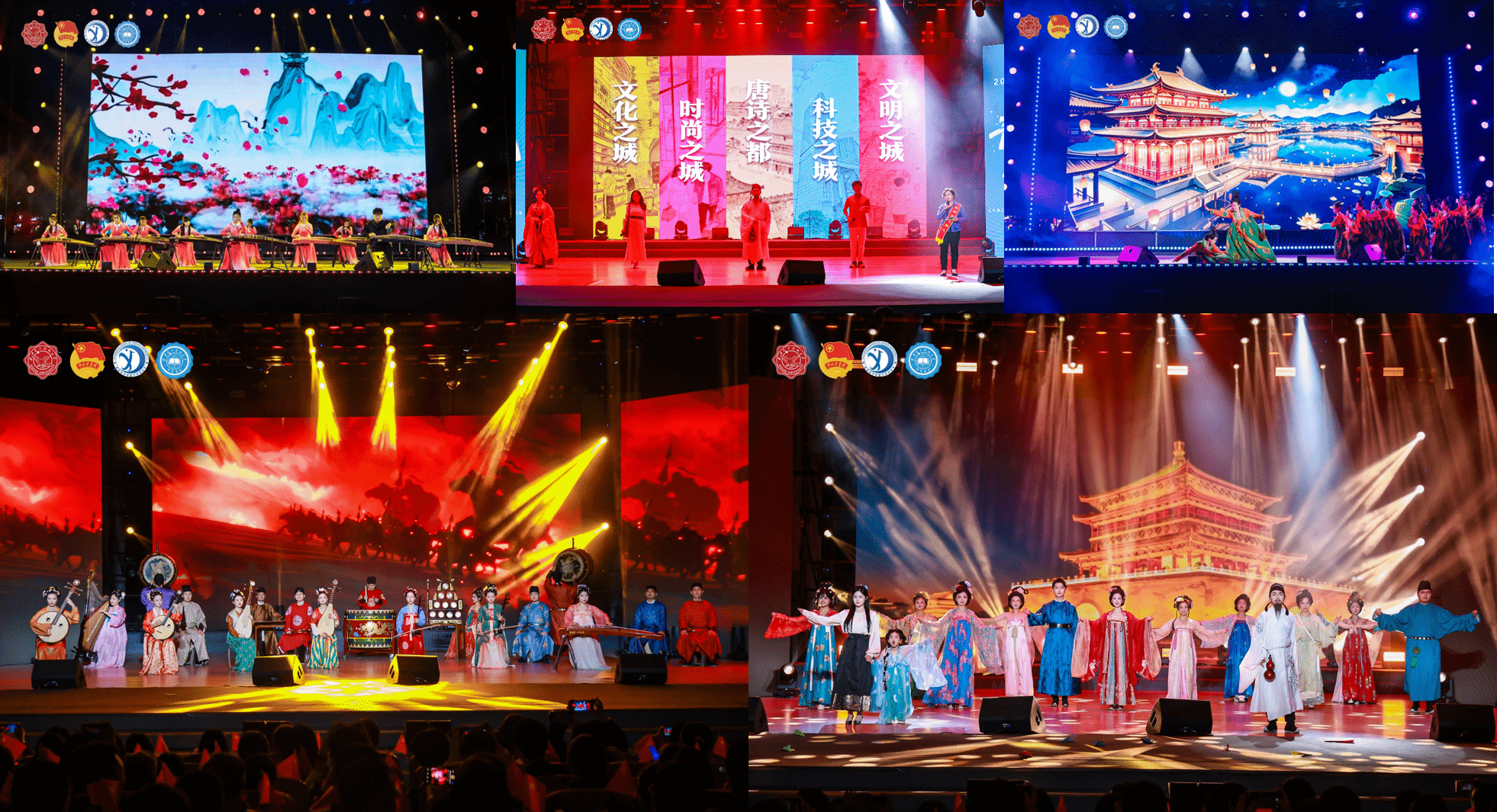 晚会现场,传统与现代精彩碰撞,开启一场跨越时空的对话。开场《大唐雅韵钟鸣鼓乐》西安外事鼓乐团以震撼鼓点穿越千年;《唐宫夜宴》大学生艺术团舞蹈团的同学们身着华丽服饰,以灵动舞姿完美融合古典韵味与现代舞台表现力;离退休教职工劲松艺术团带来的蒙古舞蹈《敬》用舒展的舞姿和深情的演绎,触动每颗心怀敬意的青春心房;《长相忆》《长安夜》秦腔传承人李梅和西安摇滚音乐人王建房合作用婉转的秦腔、澎湃的摇滚、真诚的旋律,连接起每颗向往长安的心;《西安人的歌》西安唱作人程渤智带动全场,气氛热烈引发大合唱;《西安礼遇》用不同维度的城市故事,完成最具仪式感的“入学第一课”,“孝老爱亲全国道德模范”丁水彬、西安市新文艺青年协会代表冯佳晨等城市榜样与新生共同演绎,让新生在西电开启无限可能的青春之旅。
