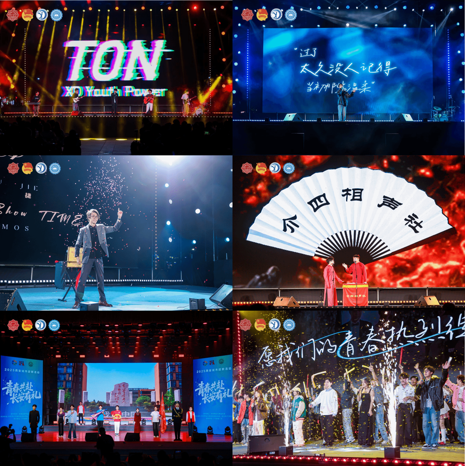 晚会聚焦青春与梦想,为新生们展示追逐梦想的广阔天地。《青春的誓言》社团成员们倾情演绎大学生活的无限可能。《向祖国报告》大学生艺术团朗诵与主持人团以朗诵形式展现西电人矢志不渝的科技报国情怀。《夜空中最亮的星》大学生艺术团合唱团用温暖的歌声传递对科技工作者的敬意,激励同学们勇攀科学高峰。《网安攻防战》信息网络技术中心通过现场模拟钓鱼攻击事件,为同学们敲响网络安全警钟;陕西省魔术家协会理事屈捷与MiracleMiracle魔术社学生共同演绎魔术《奇迹时刻》《祝愿》,介四相声社带来的《打灯谜》将欢声笑语带给全场。夏天音乐社、大学生艺术团、TON乐团及校歌赛十强歌手轮番登台,从深情的乐队演奏到充满故事感的独唱,每首歌都引起共鸣,引发大合唱。来自IDOL舞社、B-Force街舞社、Shining动漫社的同学们,把年轻的朝气洒满舞台,感染着台下每一颗跳动的心脏,令台下尖叫不断。这些节目各具特色,共同构成这场主题鲜明、创意无限的迎新晚会,为新生们开启充满希望与梦想的大学生活新旅程。